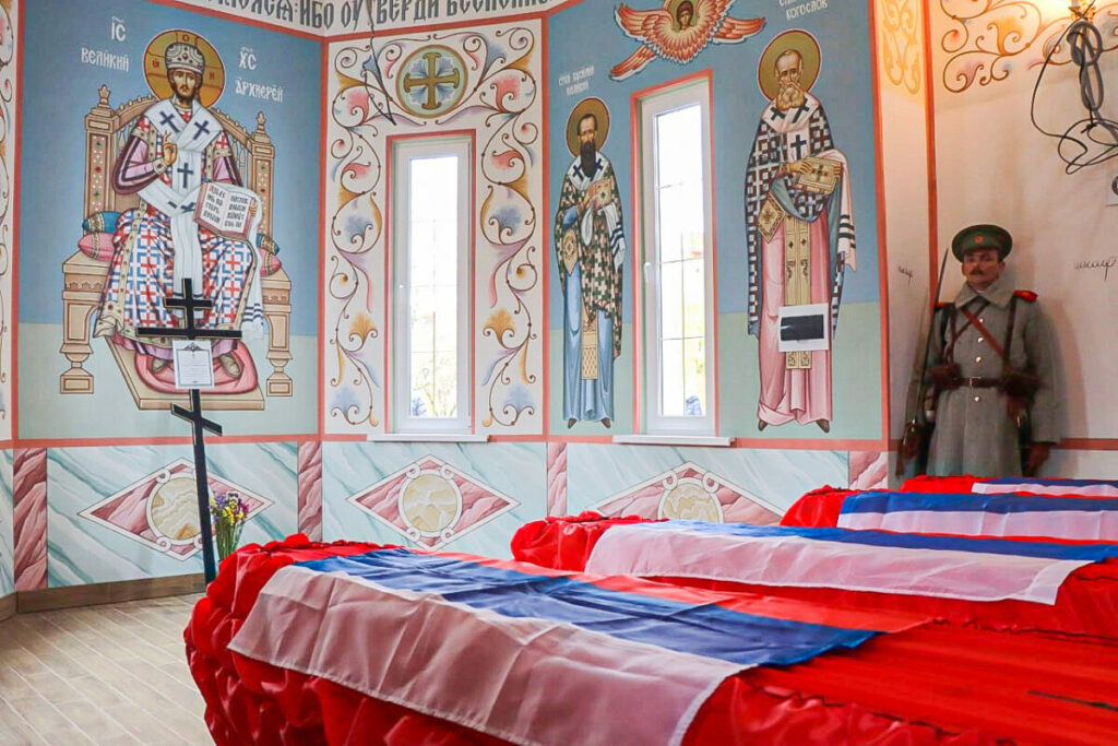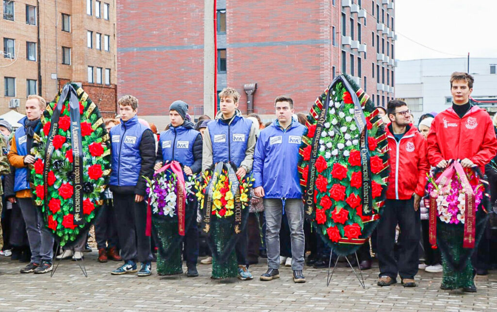 В День народного единства у стен храма в честь святого праведного страстотерпца-врача Евгения Боткина собрались сотни смолян: глава города Александр Новиков, председатель городского Совета Анатолий Овсянкин, депутаты областной Думы и Смоленского горсовета, представители духовенства, молодогвардейцы, поисковики, офицеры и курсанты Смоленской академии ПВО, а также реконструкторы – все пришли, чтобы предать земле воинов Первой мировой, скончавшихся в смоленских госпиталях.